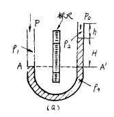 式(2)表明,相对压力P正比于液柱高度H,这是液柱式压力计测量压力基本原理。