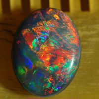 在深色的胚体色调上呈现出明亮色彩的,我们称之为黑欧泊。黑欧泊出产于澳大利亚新南威尔士州的莱顿宁瑞奇,是最著名、最罕见和最昂贵的欧泊品种。黑欧泊并不是指它完全是黑色的,只是相比胚体色调较浅的欧泊来说,它的胚体色调比较深。