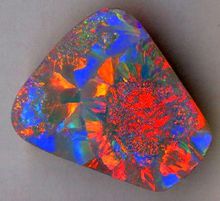 晶质欧泊以上各种欧泊有半透明或透明的胚体色调,如果晶质欧泊有漂亮的颜色,那就十分有昂贵,譬如“水晶黑欧泊”。