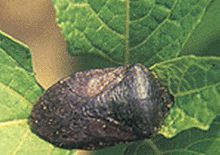 虫体呈六角状扁椭圆形,表面棕褐色或棕黑色,长1.8~2.2cm,宽1~1.2cm。头小,呈三角形,有单眼一对,呈点状突起。背部有膜质半透明翅两对,浅棕色至棕褐色。胸部有足3对,足多已脱落。腹部比背部隆起,有5~6节,每节近边缘有一突起的小点。质脆,有特异臭气,味微咸1。