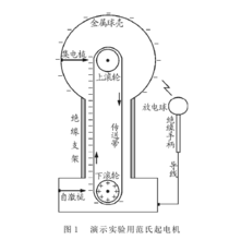 范氏起电机可演示感应起电实验。摩擦起电与感应起电是两种基本的静电起电方式。当起电机的金属球带上一定电荷时,教师手持验电器慢慢靠近金属球,学生看到验电器的两箔片逐渐张开,靠得越近张开的角度越大;再将验电器逐渐远离金属球时张角变小,验电器离开金属球足够远时两箔片合拢。这就是感应起电实验。在感应起电过程中验电器所带的净电荷等于零。然而验电器与金属球靠得足够近时发生火花放电,此时验电器带上了净电荷,再将验电器远离金属球时两箔片不再合拢。