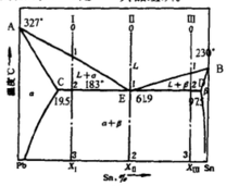 发生共晶反应的合金的结晶:Pb-Sn合金相图中有三种相