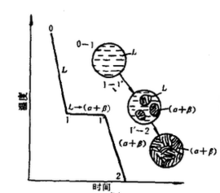 最简单的共晶反应是在二元合金系统中,具有共晶成分的液体L,在共晶温度下同时凝固形成两固体相α和β共晶组织。通常用公式L→a+β表示。在此共晶反应温度下,出现L、α及β三相共存。以此方式凝固的合金为共晶合金。偏离共晶成分的合金组织为亚共晶或过共晶。