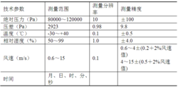 矿井通风综合参数检测仪我国生产的JFY型矿井通风综合参数检测仪,是一种能同时测量空气的绝对压力、相对压力、风速、温度、湿度和时间的精密便携式本质安全型仪器,适用于煤矿井下使用。其主要技术参数如图所示。
