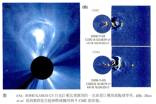 日冕物质抛射(CME)指的是大团等离子体物质从日冕中抛射出来的现象。虽然距离人类第一次确切观测到日曼物质抛射事件仅仅刚过去不到半个世纪,对CME的研究却己经取得了长足的发展。我们现在了解到,日冕物质抛射中含有的等离子体物质的质量高达10^11~10^13kg。它们可以在几个小时到几天的时间内在行星际空间中高速运动、到达地球。由于它们含有大量的等离子体物质、产生的激波可以驱动数目众多的高能粒子、内部拥有十分复杂的磁场结构,它们可以对地球的磁层产生十分剧烈的影响。通常,人们使用白光曰冕仪对日冕物质抛射在太阳附近以及行星际空间的传播进行研究。其它的观测方法还包括射线、紫外、射电和局地观测等。