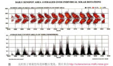 在观测中,人们发现日面上太阳黑子的数目呈周期性的变化——存在一个大概11年的周期。在这个周期内,黑子的数目从高到低变化,由此循环往复。人们据此发现了太阳活动的11年周期变化,并定义了太阳活动的极高年(黑子数目最多)和极低年(黑子数目最低)。在这11年的周期中,太阳黑子不仅存在数目上的变化,还存在磁场强度和讳度分布的变化——形成了著名的太阳黑子周期变化的“糊蝶图”。