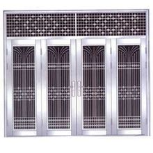 铝合金这种门所用的铝合金材质不同于我们所见到的普通铝合金门窗,它的硬度较高,且色泽亮丽,再饰以花纹图案修饰,给人一种金碧辉煌之感,属中档防盗门。因为这种门不易褪色,所以也拥有一定的消费群体。