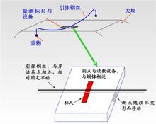 引张线装置一般设在水工大坝的观测廊道内,由端点、观测点、测线(不锈钢丝)和测线保护管组成。为解决引张线垂曲过大的问题,在其间常设置若干浮托装置。测点上的偏离值可采用读数显微镜读取标尺上的分划或通过位移传感器自动测定。假设端点是固定不动的,而各观测点上的标尺或传感器是与坝体相连的,则偏离值的变化就代表该点所代表坝段的位移值。引张线法不受大气旁折光影响,一次观测中的误差可高达0.03mm2。