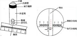 (1)读数显微镜法:利用刻有微分划线的读数显微镜进行的, 测微分划线最小刻划为0.1mm,可估读到 0.01mm。如图 5 所示。