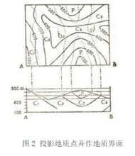 (4) 投影地质点并画出各地质界面的位置(图2)