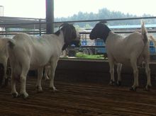 3、 配种服务和杂交羊生产相结合。饲养种公羊按上述1或2的方式经营的同时,饲养本地母羊,用波尔公羊配种从事杂交羊生产(该方式特别适合于广大的养羊专业户或养羊大户朋友); 一只本地母山羊,以年产2胎计算,平均获得3~4只羔羊,本地山羊12个月体重26.3公斤,按四只只羔羊来算,总重约78.9公斤(二只后面生的羔羊只能算一只12月龄的重量,否则就要上当了),屠率宰45%,可获羊肉36公斤,如果以36元每公斤计算,共收入1296元。如采用波尔山羊杂交养殖,在同样4只羔羊,每只12个月体重50公斤,4只羔羊总重150公斤,屠率宰46.8%,可获羊肉70公斤,以36元每公斤计算,共收入2520元。在每年同样饲养一只母羊情况下采用波尔山羊杂交可多收入1224元。提高经济效益1倍。