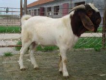 波尔山羊为白色被毛,头、颈、肩部均长着红褐色花纹。原产地为南非,据考证,印度山羊和欧洲山羊是波尔山羊的祖先,并且奶山羊对波尔山羊的形成有一定的影响,因此该品种目前还保留着产奶量高的特点。波尔山羊的祖先最初被南非那马克亨廷顿和班图族部落所饲养。1800~1820 年东好望角牧民定居下来,至 20 世纪初已经形成了一定数量的波尔山羊群。波尔山羊能较好地在亚热带地区生活,它们具有啃食灌木枝叶和宜于放牧的习性。1