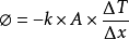 例如,在一维热传导过程中,热流密度的计算公式为,k为比例系数,称为热导率或导热系数,∆T是温度的变化,x表示材料的厚度,由于热能是向温度降低的方向传输,所以方程中有负号。此时,通过A面积的平壁的热流率计算即为