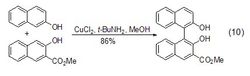 氯化铜和胺形成的配合物能有效催化2-萘酚的氧化偶联反应,得到对称的1,1' -二萘基-2,2'-二酚 (式10)。