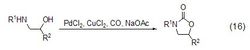 此外,氯化铜还能作为钯试剂催化反应中的氧化剂,将还原消除反应后得到的低价钯试剂重新氧化为Pd(II) 进入催化循环,从而实现催化反应 (式16)。2