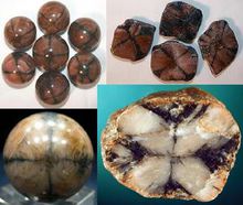 红柱石有一个变种叫空晶石。在空晶石的剖面会呈现出黑色的十字结构。这种十字结构是红柱石在形成时接收了一些碳和粘土所致。这种空晶石常被制成人们佩带的小饰物。