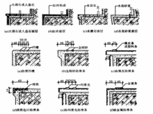 踏步表面应有防滑措施,通常是在踏步边缘做一至二条防滑条,以避免行人滑倒,并起到保护踏步阳角的作用。常见的防滑条材料如:水泥铁屑、金刚砂、橡皮或塑料条、金属条(铸铁、铝条、铜条)、马赛克及带防滑条地砖等,如右图所示。4