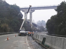 (5)安装:混凝土护栏块在安装前,应先精确放样定位,按设计要求做好枕梁,并复核标高和平面位置无误后,方可开始安装。混凝土护栏块的安装应从一端逐步向前推进,采用小型门架车安装,小型门架车应具备起吊、 前后左右移动功能。在安装过程中应使每块护栏块的中线与公路中心线相一致,在曲线路段,应使护栏布设圆滑,在竖曲线路段,应使护栏与公路线型协调。3