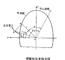 由基本啮合定理知:定平面中的两齿形接触点上的共法线通过复节曲线上的对应点。该对应点在复节曲线上的位置由非圆齿轮副的瞬时传动比确定。因此,在求一对共轭齿形的啮合线时,应该知道两齿轮的中心距和其中一个齿轮的节曲线及齿形。