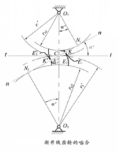 是基圆半径,P是啮合节点。当一对齿在啮合过程中,接触点经过KL长度,而齿轮
