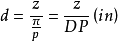 式中:径节DP=π/p,单位为1/In。
