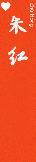 | 朱,字形从木,本义为一种红心木的名称,亦代表一种色泽接近赤色的颜色。西晋思想家、文学家傅玄(217-278)曾说过“近朱者赤”,表明古人视朱与赤是两种色彩相近的红色。朱色被纳入传统五色观的赤色系列中,寄位于南方,属火,代表光明向阳之色。 朱色在古时也是代表尊贵的色彩。自公元前11世纪的周朝开始,即利用不同的头冠、服饰及衣色来定名位、别尊卑。在建筑用色中,据晋代葛洪所著的《西京杂记》记载,汉成帝刘骜的皇后赵宜主(即名舞姬赵飞燕)与妹妹所居住的寝宫即以朱红色为主、黄金色为辅,极其精致华丽。很多王公贵胃的豪宅正门也是用的朱红色,以示地位显赫。 朱红色还寓意大吉大利,在南宋文人咸淳的《临安志)中,海神妈祖(林默娘)每次出海飞翔救溺,都身穿朱衣以表示吉祥。 |  |