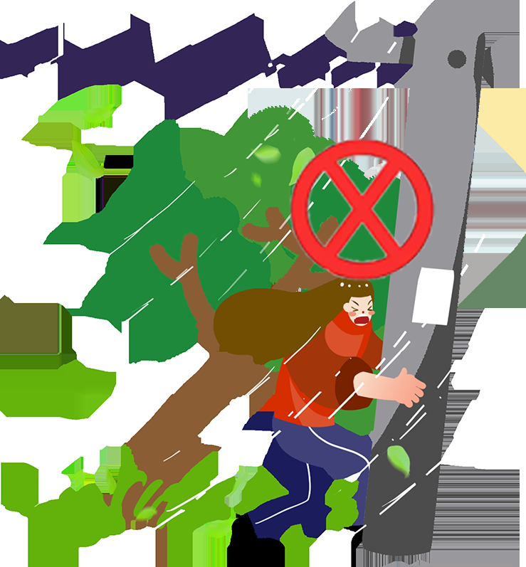 大风可能将架空线刮断,雷击和暴雨容易引起裸线、变压器等电力设施发生短路、放电,对人身安全构成威胁,尽量远离电线杆、变压器、配电箱等电力设施。