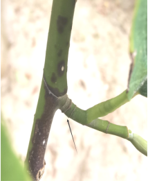 四月的玉兰抽梢展叶,倒卵形的阔大叶片,先端本应宽圆平截,却在微凹的中心点突然伸出细短的小尾巴,于飒爽大气中暗露俏皮可爱。叶柄的基部有好几道环纹,就像戴了几圈手镯,这种结构叫托叶痕,是木兰科所有植物的共同特征。