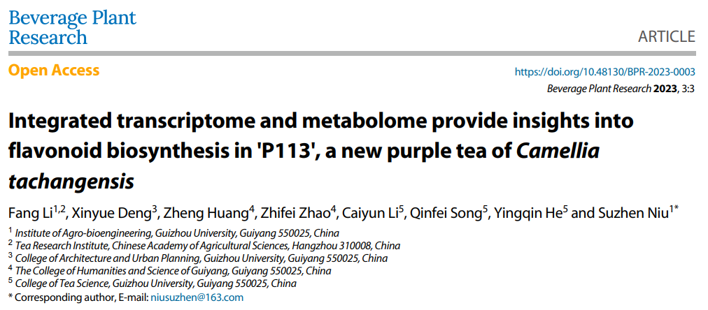 大厂茶(Camellia tachangensis)是山茶科山茶属茶组植物,主要分布在广西、贵州和云南,在进化过程中处于较原始的位置,是珍稀的茶树种质资源。目前关于大厂茶种质资源、品种选育以及基础研究都较少,该研究团队对从野生大厂茶群体中发现的一个紫化种质‘P113’的紫化机制进行了研究。