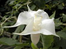 曼陀罗 | 世界广布,中国各地都有分布,常生于住宅旁、路边或草地;草本或半灌木状;叶广卵形,有波状浅裂;花单生于枝杈间或叶腋,花萼筒状,有5棱,花冠漏斗状,白色或淡紫色;蒴果卵形,有针刺。全株有毒。适量有镇静、镇痛、麻醉的功能。 | |