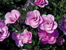 碧冬茄 | 是一个杂交种,花的颜色多变,有白色和紫色,花冠有各式脉纹,世界各国普遍引种,中国各城市公园中多有栽培;一年生草本,有腺毛,叶卵形,全缘,花单生叶腋,花萼5深裂,花冠漏斗状,筒部向上渐扩大,檐部开展,有折壁,蒴果2瓣裂,每瓣顶端又2浅裂。 | |