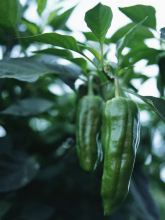 辣椒 | 本种原来的分布区在墨西哥到哥仑比亚;世界各国普遍栽培。中国已有数百年栽培历史,为重要的蔬菜和调味品,种子油可食用、果亦有驱虫和发汗之药效。由于长期人工栽培、杂交育种,品种繁多,中国也不下数十个品种。一般根据果实生长的状态、形状和大小、辣味的程度而划分为若干个变种。 | |
