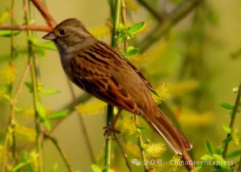 仔细看,其实灰头鹀和麻雀区别还是很明显的,灰头鹀的整个头部是绿灰色的,特别是雄鸟,特别明显;而我们见到的麻雀通常是树麻雀,它们的头顶是栗色,头侧白色,耳部有一黑斑。