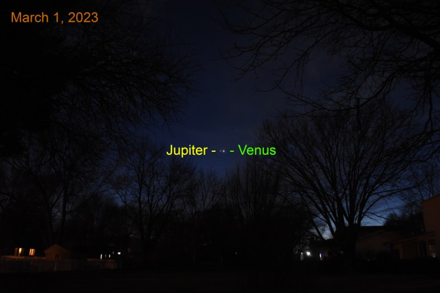 照片标题:太阳落下后西方天空中的金星和木星,2023年3月1日。
