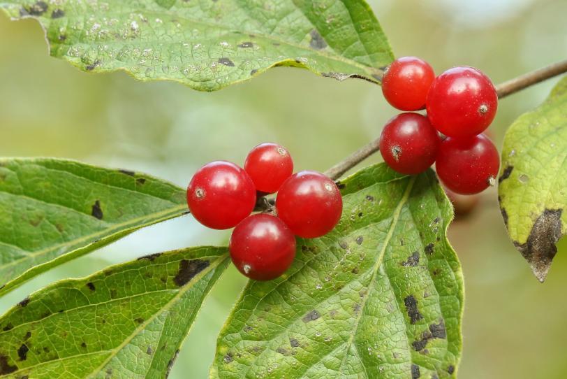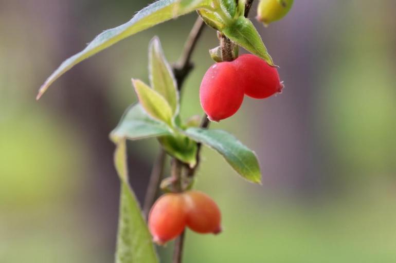 虽说我们很难见到沙雁果,但我们身边还有很多果实可以结出宝石一样果实的植物,如忍冬科Caprifoliaceae忍冬属Lonicera植物。忍冬属植物中,果实红色的种类很多,如金银忍冬(Lonicera maackii (Rupr.) Maxim.,又名金银木)、蓝叶忍冬(Lonicera korolkowii Stapf)和新疆忍冬(Lonicera tatarica L.)。