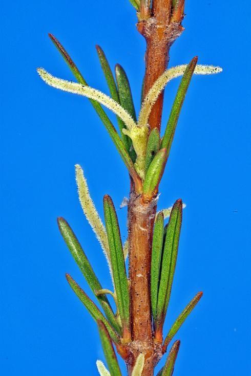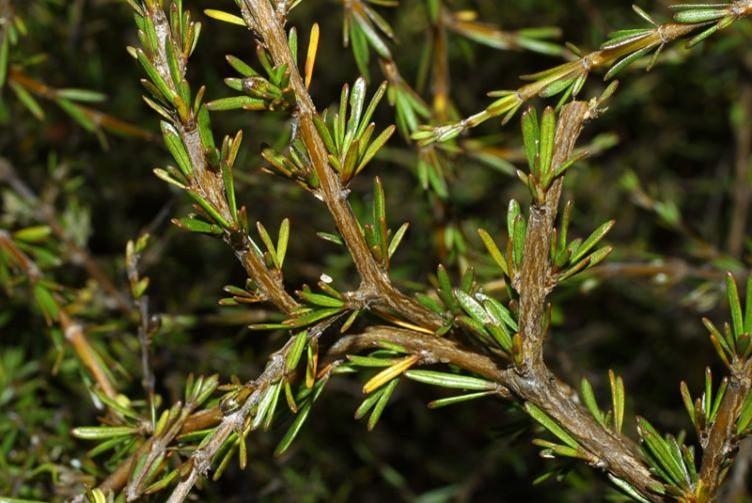 沙雁果小叶形似红豆杉,成簇生长在枝条的短枝上,叶片边缘带呈褐色至铜色。细枝蔓延至匍匐交错在一起,形成垫子状团块,直径可达2米。