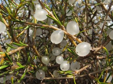它的果实是跨年成熟的,一般花期在9到11月,一直到来年春季才结果。果实颜色会随着成熟从白色转变为深蓝色,有时带有蓝色的条纹。所以说,沙雁果结出的果实并不一定是蓝冰色宝石,还会结出白色、浅蓝和深蓝色的宝石。