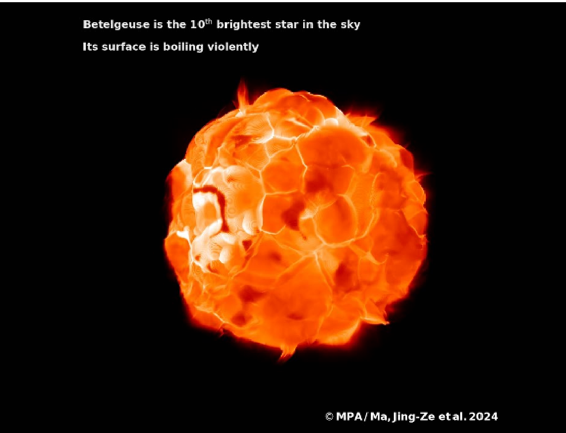 来自参宿四模拟的快照显示了对流如何主导其表面(右)