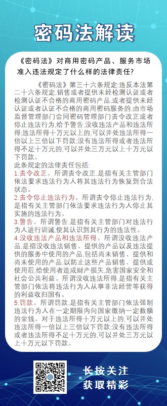 《密码法》对商用密码产品、服务市场准入违法规定了什么样的法律责任?