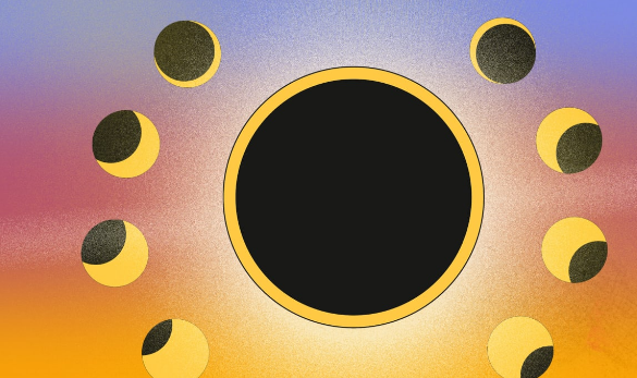 一张展示了2024年4月8日的全食带和各地日偏食程度的地图。图片来源:拉里·孔恩/阴影与物质网在你的日历上标出2024年4月8日——“日食日”。假如天气适宜,你将能毫无困难地在北美洲的大部分地方观测到一场日偏食。在此期间,这场天象将会为南部与东部的一条狭窄区域带来壮丽的日全食,在此期间,月球将会完全遮住太阳。这将是一场值得写入遗愿清单的事件!