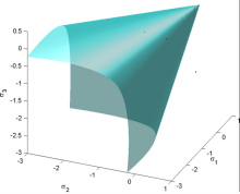 当沿其轴线观察时,表面的横截面是平滑的三角形(不同于Mohr-Coulumb)。 Willam-Warnke屈服面是凸的,并且在其表面的每个点上都具有独特且明确的第一和第二导数。 因此,威拉姆 - 瓦恩克(Willam-Warnke)模型在计算上非常强大,已被用于各种粘性摩擦材料。5