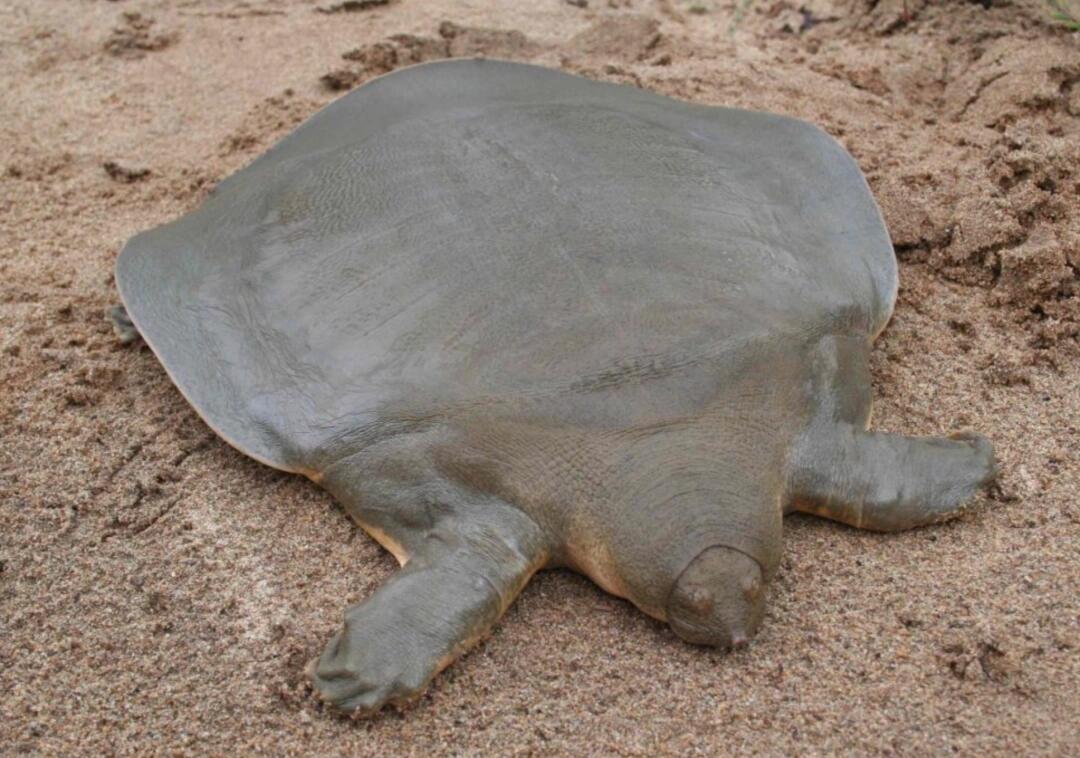 鼋的古老生存智慧:鼋是一种古老而珍稀的大型鳖类,主要分布于我国南方的江河、湖泊及溪流中,在东南亚部分地区也有踪迹。它体型庞大,背甲长度可达 1 米以上,体重能超过 100 千克,背甲呈圆形,表面光滑且有清晰的纹路,犹如天然的盾牌。鼋拥有强大的潜水能力,借助其独特的呼吸系统,可在水下停留长达数小时,通过皮肤和口腔黏膜进行气体交换,悄无声息地潜伏在水底,等待鱼虾、螺蚌等猎物靠近。作为水陆两栖动物,鼋喜欢在夜间上岸活动,尤其在繁殖季节,雌性鼋会艰难地爬向岸边沙地,挖掘巢穴产卵,完成生命的延续。由于栖息地破坏、过度捕捞等原因,鼋的数量急剧减少,如今已成为国家一级保护动物 。