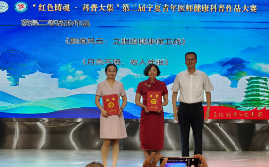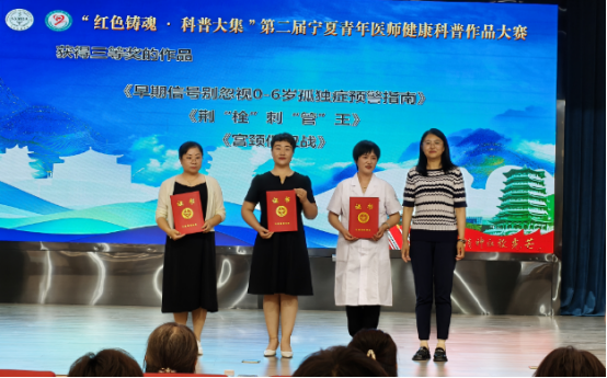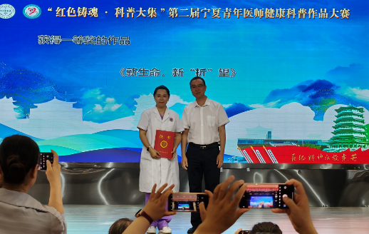 经过激烈的角逐,宁夏医科大学总医院参赛作品《新生命,新“析”望》荣获一等奖,宁夏回族自治区人民医院参赛作品《胆道风云:之胆道健康保卫战》、宁安医院参赛作用《月亮不睡,老人难眠》荣获二等奖,贺兰县人民医院参赛作品《早期信号别忽视0-6岁孤独症预警指南》 、贺兰县人民医院参赛作品《荆“栓”刺“管”王》、固原市人民医院参赛作品《宫颈保卫战》荣获三等奖,宁夏回族自治区人民医院参赛作品《胰腺炎-人体器官城保卫战》、石嘴山市第一人民医院参赛作品《告别脂迷心窍,迈向健康体重》、固原市原州区人民医院参赛作品《一定药安全》、吴忠市人民医院参赛作品《老年人“药”安全》、中卫市妇幼保健院参赛作品《宫外不能孕》、宁夏回族自治区人民医院参赛作品《别让养生变疯魔》、固原市人民医院参赛作品《智齿奇遇记》、银川市妇幼保健院参赛作品《揭秘X.O型腿,您的腿型健康吗?》、中卫市第三人民医院参赛作品《滴水不漏,享受自由》荣获优秀奖。参会领导与专家分别为获奖团队颁奖。