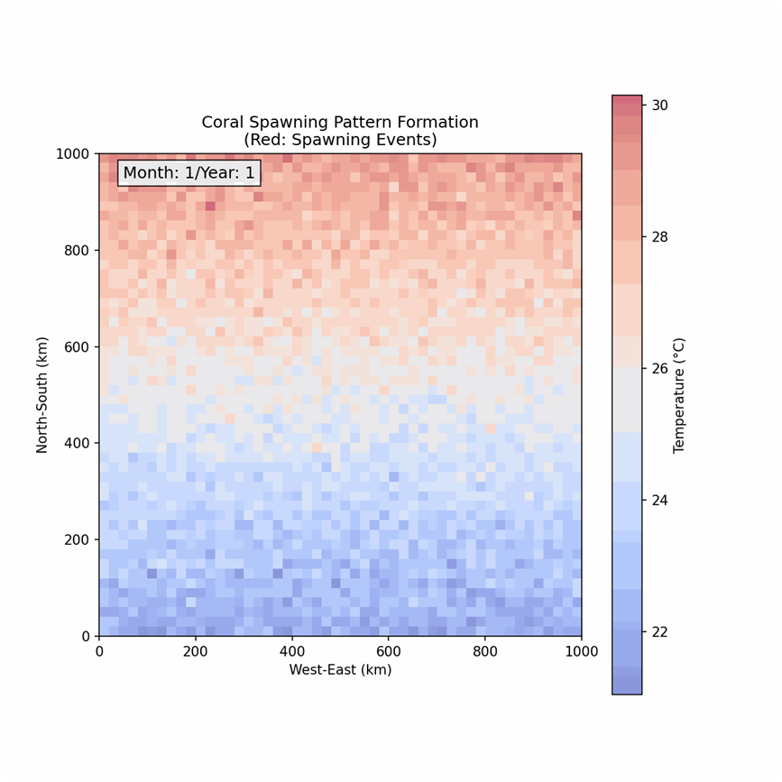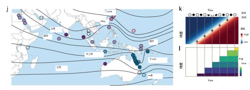 珊瑚的形成源于由珊瑚虫通过分泌钙质骨骼并逐渐堆积的过程,这一过程受到水温影响,而珊瑚虫的产卵则受到月相的影响,只有在特定的温度和月相条件下,珊瑚虫才可能生长。由于全球各地维度的不同,导致不同维度适合珊瑚繁殖的温度出现在不同月份,再结合月相信息,就能够通过峰值选择模型,对全球珊瑚礁对应的生态位进行建模,而模型给出的预测,也符合真实观测到的数据,即在相同的纬度上,即使相隔很远的珊瑚也会在同一天产卵,而其它纬度略有不同的珊瑚群会在一月后产卵。