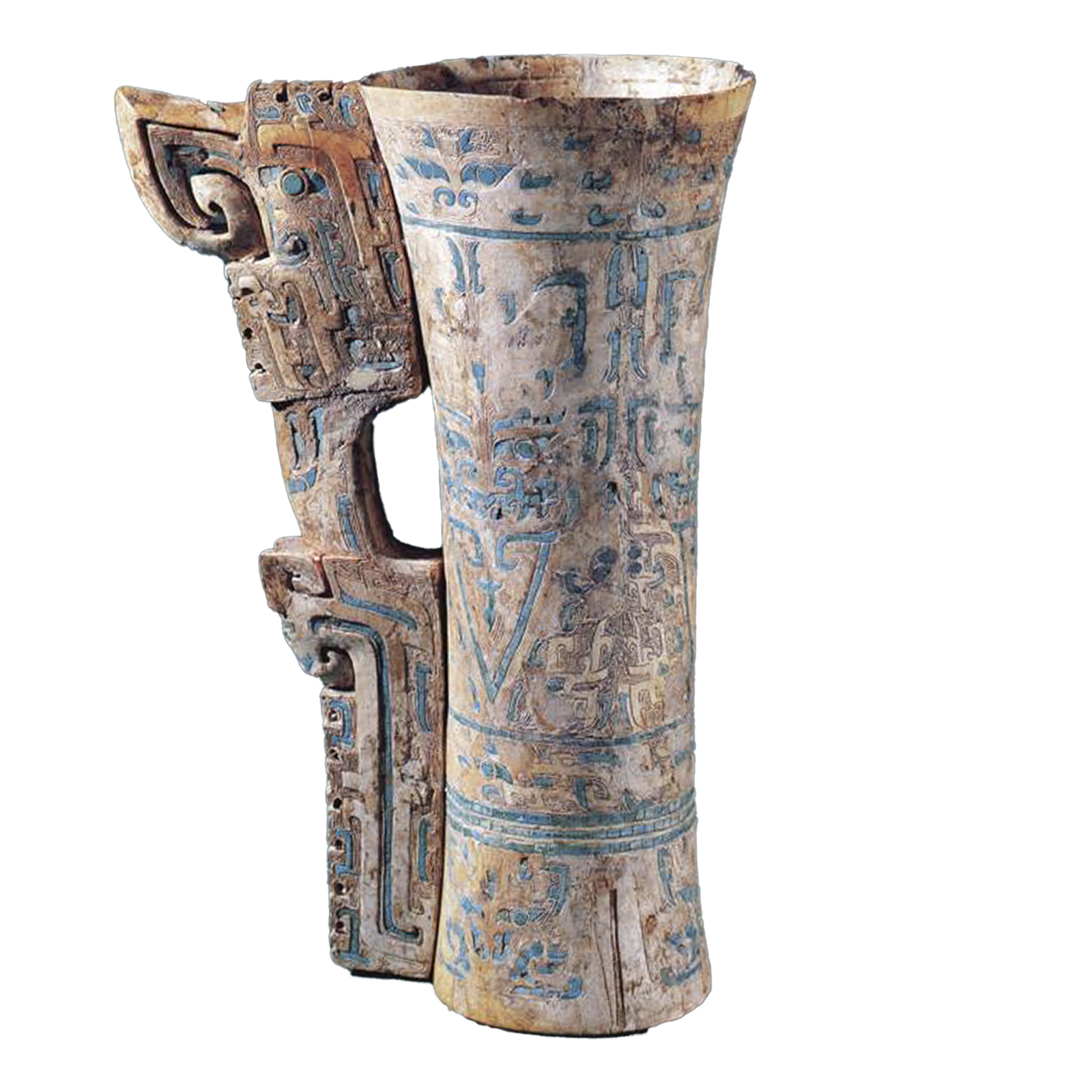 商嵌绿松石象牙杯器体高大,图案富丽,工艺精巧,