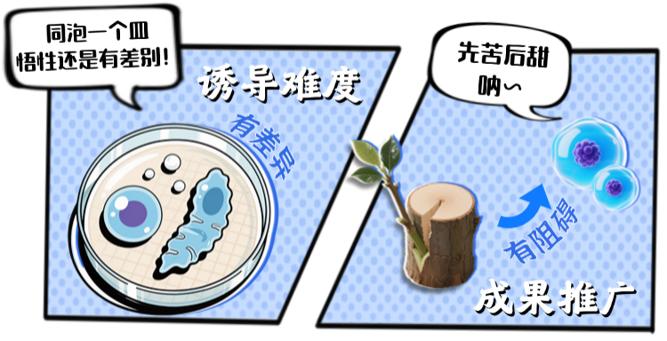 最大的问题是,不同品种的植物“脾气”不一样。不是所有果树、作物的干细胞都容易诱导,有的品种很容易成功,有的却要反复实验才能找到方法,这需要科学家一点点攻关。