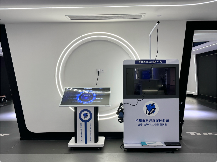 依托技术反制,实现精准反诈。杭州科普反诈体验馆以“知诈、识诈、揭诈、防诈、反诈”五位一体为核心,自主研发核心软件,依托VR一体机、AI换脸变声设备、多人测试抢答机、互动问答机器人、科普万花筒等多种智能交互设备,从冒充公检法的"权威施压"到AI换脸的"亲情诈骗",聚焦诈骗高发案件,通过沉浸式场景还原与互动式骗局拆解,让"识骗防骗"成为参观者的直观技能。参观者不再是被动听课,而是化身"防骗侦探",在"亲历"骗局的过程中,实时获取系统给出的"拆招指南",结合反诈剧场的真实诈骗案例,让反诈知识从"听过"变成"会用"。这种从"说教"到"体验"的升级,正是场馆对"精准预防"理念的生动诠释。