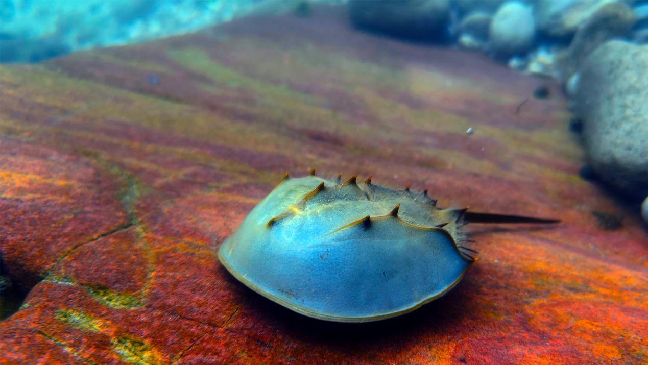 在宽阔一些的地方,还能看到一种独特的海洋生物——鲎,它像一个长了尖刺的盾牌或是形状古怪的锅盖,是一种极为古老的节肢动物。