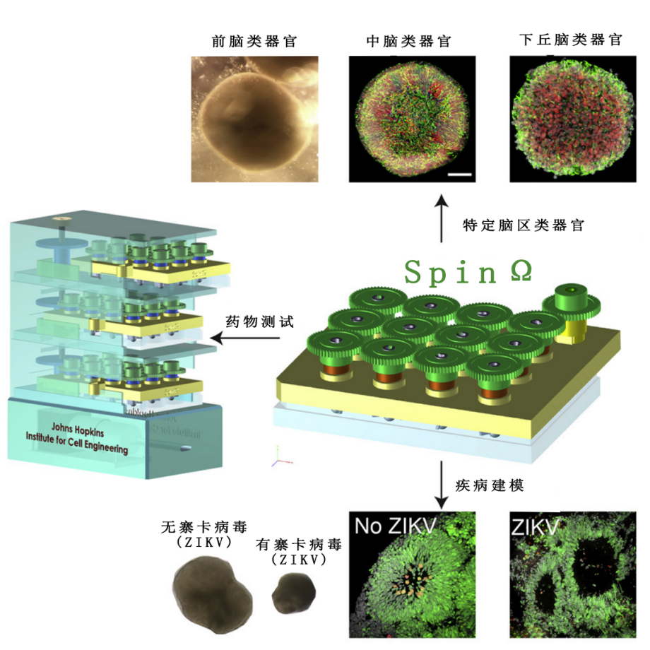 2016年,美国约翰霍普金斯大学医学院的研究团队,利用脑类器官技术给出了关键答案。他们使用了一种革命性的工具——低成本、易操作的3D打印小型旋转生物反应器(SpinΩ),高效地培养出包含前脑、中脑、下丘脑等多种脑区结构、具有清晰分层的人类脑类器官。