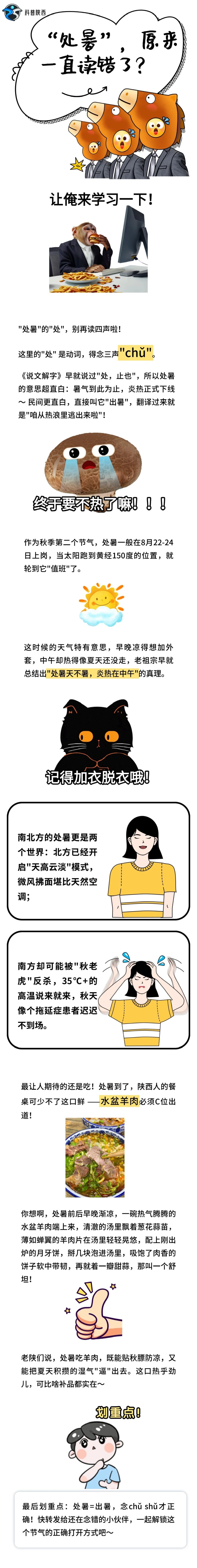 图文简介: 处暑一到,暑气渐消,可关于它的学问不少。先纠个音:“处”念三声才对。南北方光景不同,吃食更是各有讲究,陕西的水盆羊肉就藏着老祖宗的智慧,且看正文细说。